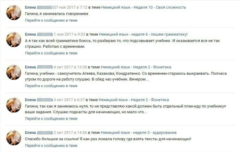 - А самое интересное то, что Елена на 12 неделе заполнила анкету финалиста, указав в результатах, что достигла уровня А1 с нуля в немецком языке, т.е. она получила результат, заявленный в нашей программе.